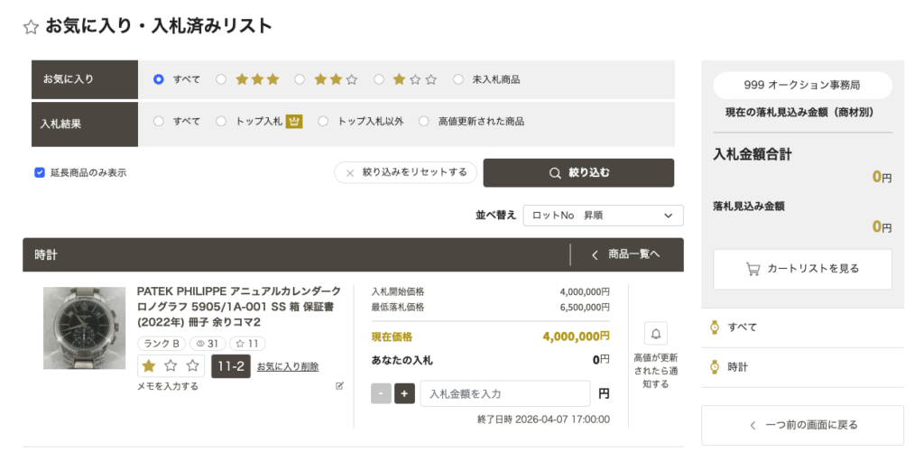 お気に入り・入札済みの確認