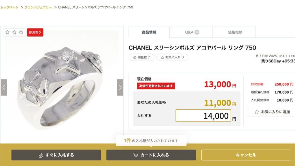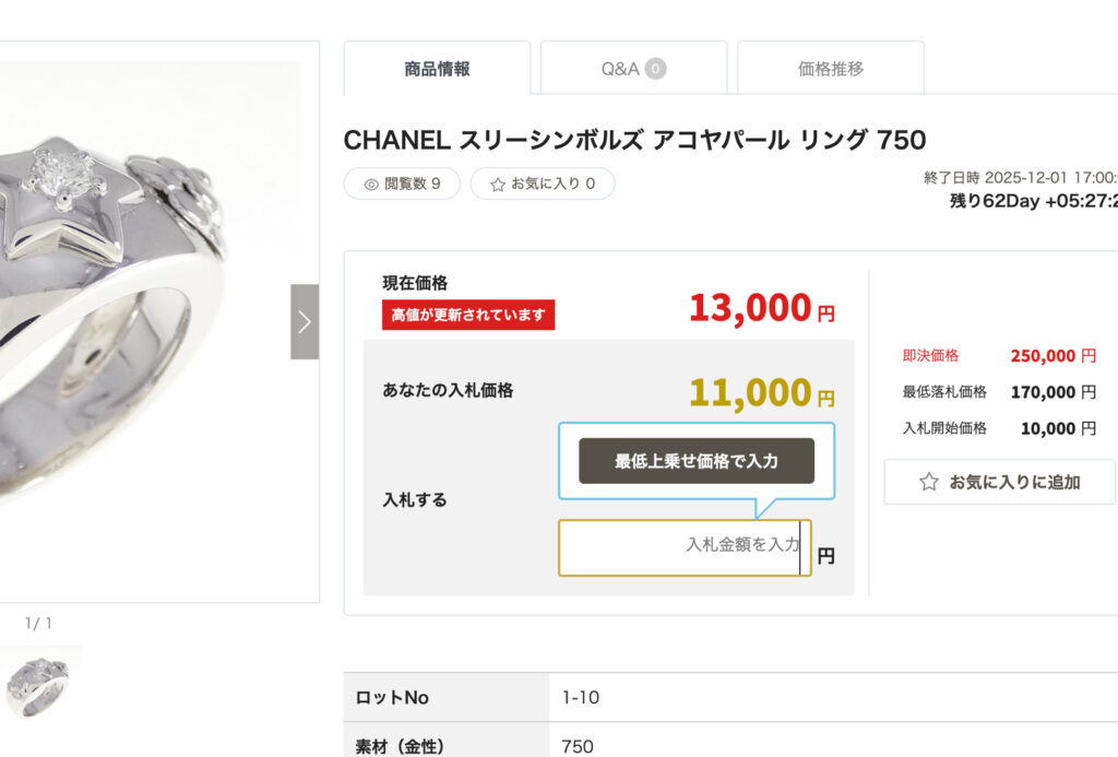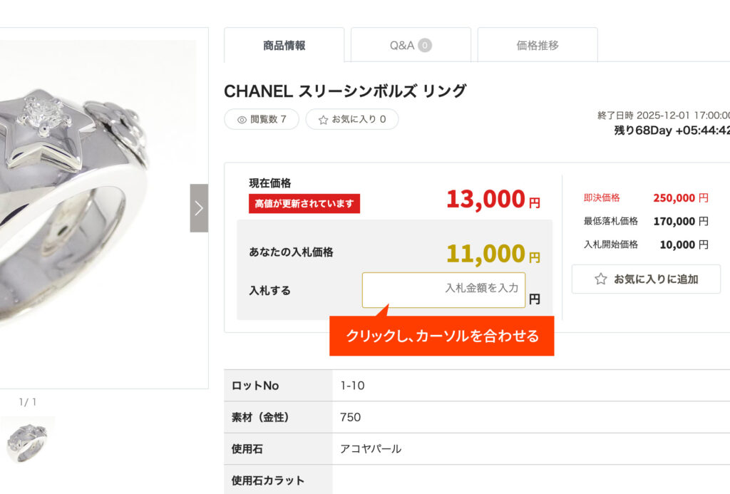 ・ワンビットボタンで自動入力されるのは、あくまでも「最低上乗せ価格」を含んだ金額です。入札額をもっと高くしたい場合は、手動で金額を変更してください。