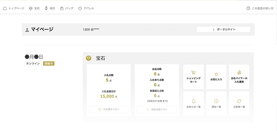 各オークションの商材ごとに出品商品・入札商品に関する情報がわかります