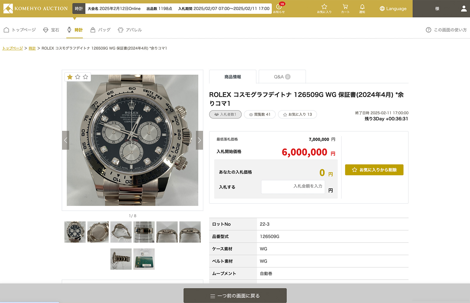 入会成功后,我们将发行一个KOMEHYO拍卖会会员帐户。