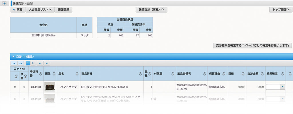 请从门户网站上自己的物品列表中查看 "拍卖结果",对于处于 "待谈判 "状态的物品,请在待谈判当日 17:00 之前在门户网站的 "待谈判(展品)"栏目中决定是否 "通过"。